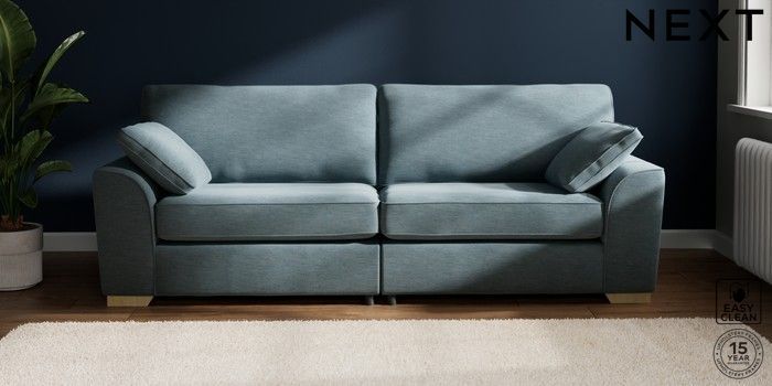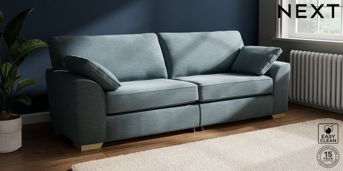 7.2.10 Stamford 4 Seater Sofa Fine Chenille Easy Clean Mid Blue Large Square Angle - Light | Made Click here to use our website with more accessibility support, for example screen readers