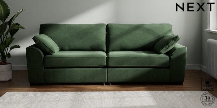 7.2.10 Stamford 4 Seater Sofa Fine Chenille Easy Clean Mid Khaki Green Large Square Angle - Dark | Made Click here to use our website with more accessibility support, for example screen readers