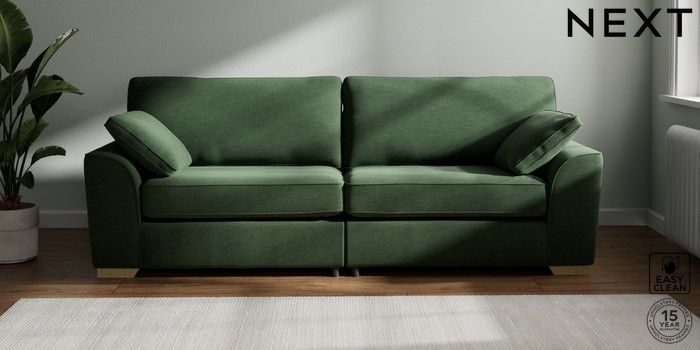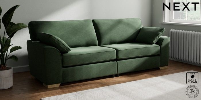 7.2.10 Stamford 4 Seater Sofa Fine Chenille Easy Clean Mid Khaki Green Large Square Angle - Light | Made Click here to use our website with more accessibility support, for example screen readers
