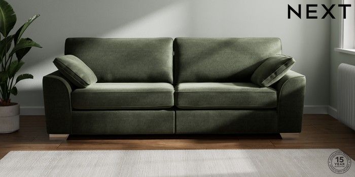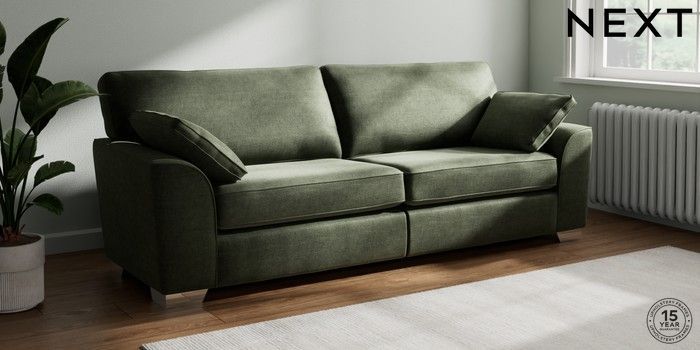 7.2.10 Stamford 4 Seater Sofa Luxe Chenille Mid Green Large Square Angle - Chrome Metal | Made Click here to use our website with more accessibility support, for example screen readers
