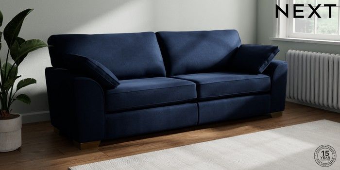7.2.10 Stamford 4 Seater Sofa Luxe Chenille Navy Blue Large Square Angle - Brushed Brass | Made Click here to use our website with more accessibility support, for example screen readers