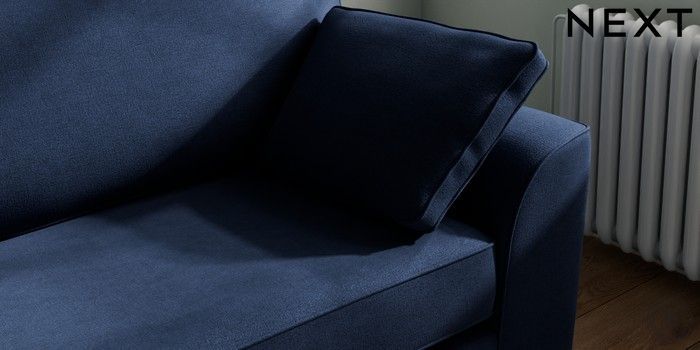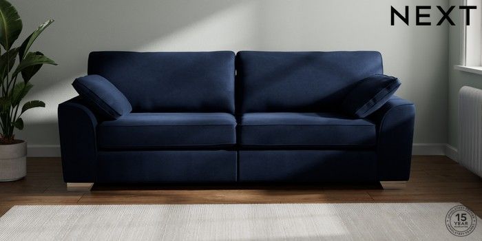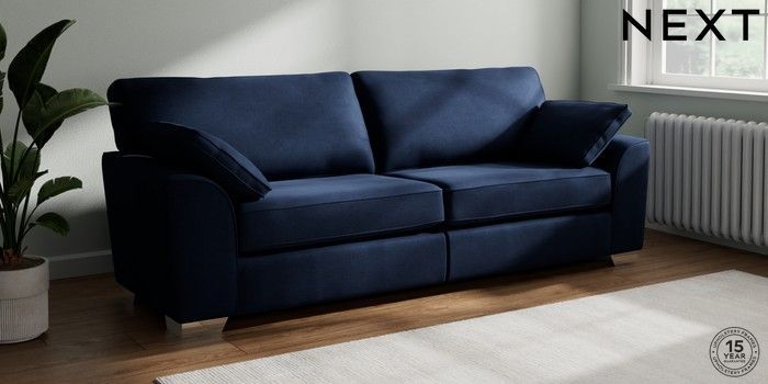 7.2.10 Stamford 4 Seater Sofa Luxe Chenille Navy Blue Large Square Angle - Chrome Metal | Made Click here to use our website with more accessibility support, for example screen readers