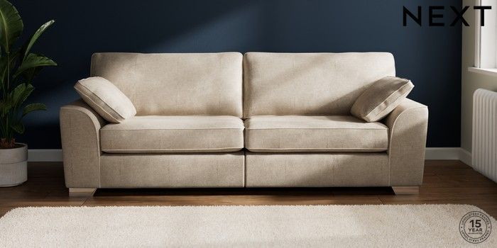 7.2.10 Stamford 4 Seater Sofa Plush Chenille Light Natural Large Square Angle - Chrome Metal | Made Click here to use our website with more accessibility support, for example screen readers