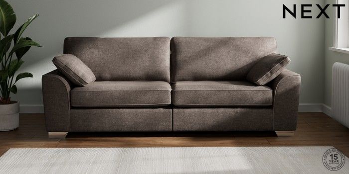 7.2.10 Stamford 4 Seater Sofa Plush Chenille Mink Brown Large Square Angle - Chrome Metal | Made Click here to use our website with more accessibility support, for example screen readers