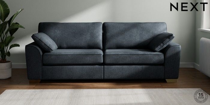 7.2.10 Stamford 4 Seater Sofa Plush Chenille Slate Blue Large Square Angle - Brushed Brass | Made Click here to use our website with more accessibility support, for example screen readers
