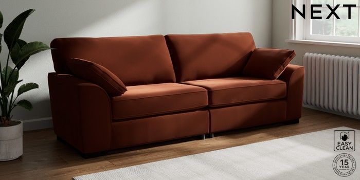7.2.10 Stamford 4 Seater Sofa Plush Velvet Easy Clean Ginger Orange Large Square Angle - Dark | Made Click here to use our website with more accessibility support, for example screen readers