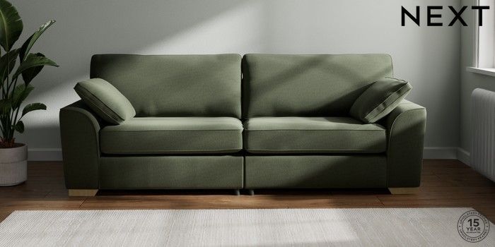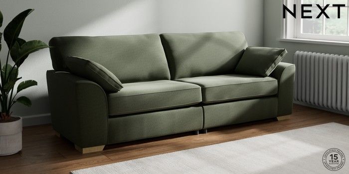 7.2.10 Stamford 4 Seater Sofa Relaxed Linen Look Dark Green Large Square Angle - Light | Made Click here to use our website with more accessibility support, for example screen readers