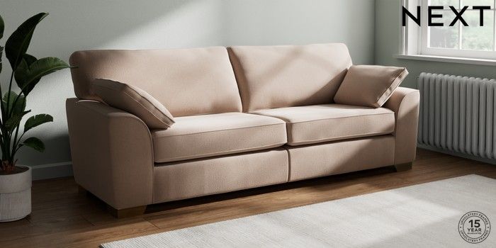 7.2.10 Stamford 4 Seater Sofa Relaxed Linen Look Mid Natural Large Square Angle - Brushed Brass | Made Click here to use our website with more accessibility support, for example screen readers
