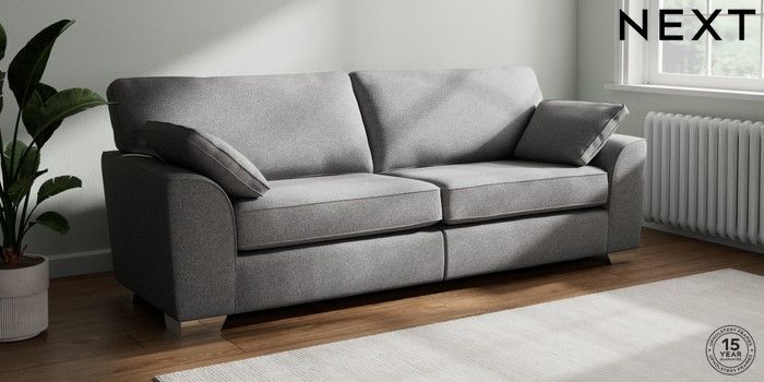 7.2.10 Stamford 4 Seater Sofa Studio Chenille Mid Grey Large Square Angle - Chrome Metal | Made Click here to use our website with more accessibility support, for example screen readers