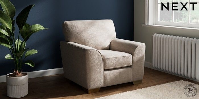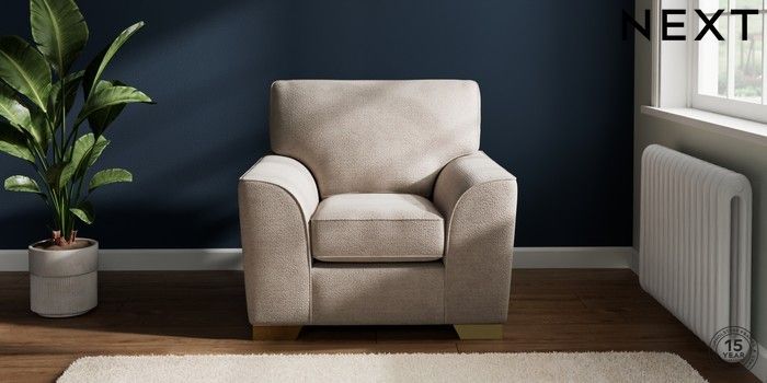 7.2.10 Stamford Armchair Boucle Chenille Light Natural Square Angle - Brushed Brass | Made Click here to use our website with more accessibility support, for example screen readers