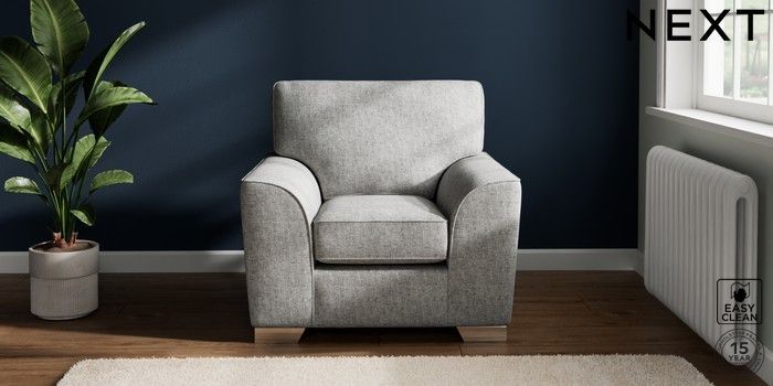 7.2.10 Stamford Armchair Chunky Boucle Easy Clean Light Grey Square Angle - Chrome Metal | Made Click here to use our website with more accessibility support, for example screen readers