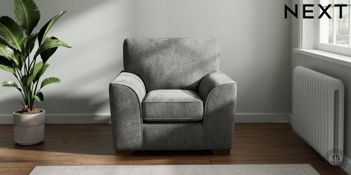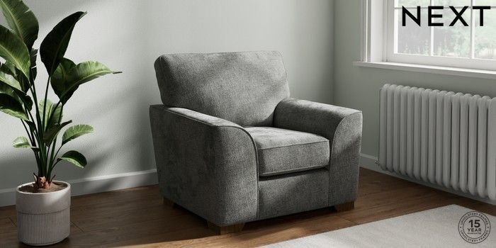 7.2.10 Stamford Armchair Chunky Chenille Dark Grey Square Angle - Mid | Made Click here to use our website with more accessibility support, for example screen readers
