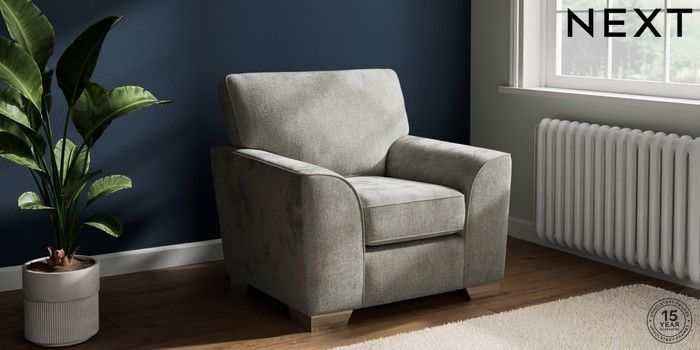 7.2.10 Stamford Armchair Chunky Chenille Light Grey Square Angle - Chrome Metal | Made Click here to use our website with more accessibility support, for example screen readers