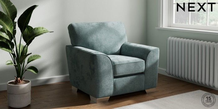 7.2.10 Stamford Armchair Chunky Chenille Light Teal Green Square Angle - Chrome Metal | Made Click here to use our website with more accessibility support, for example screen readers