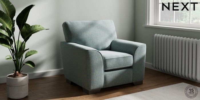 7.2.10 Stamford Armchair Chunky Marl Mid Blue Square Angle - Gunmetal | Made Click here to use our website with more accessibility support, for example screen readers