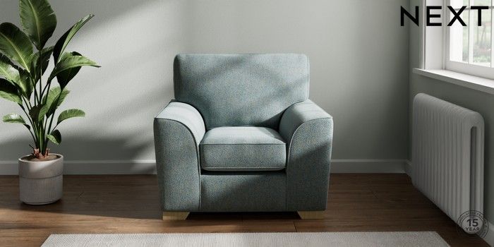 7.2.10 Stamford Armchair Chunky Marl Mid Blue Square Angle - Light | Made Click here to use our website with more accessibility support, for example screen readers