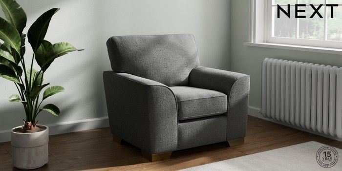 7.2.10 Stamford Armchair Chunky Texture Dark Grey Square Angle - Brushed Brass | Made Click here to use our website with more accessibility support, for example screen readers