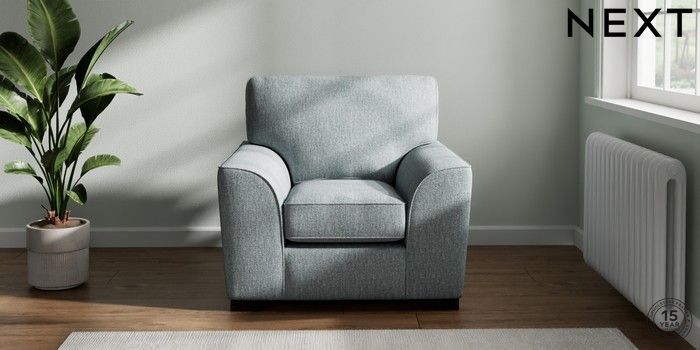 7.2.10 Stamford Armchair Chunky Weave Mid Blue Square Angle - Dark | Made Click here to use our website with more accessibility support, for example screen readers