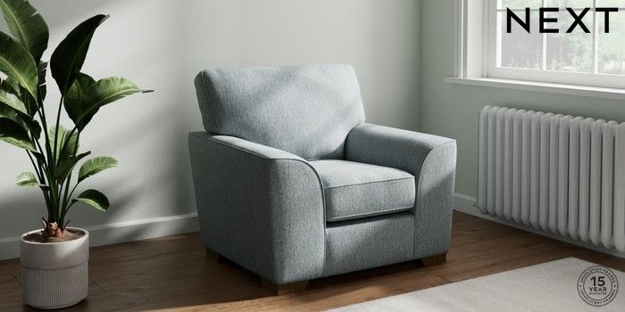 7.2.10 Stamford Armchair Chunky Weave Mid Blue Square Angle - Mid | Made Click here to use our website with more accessibility support, for example screen readers