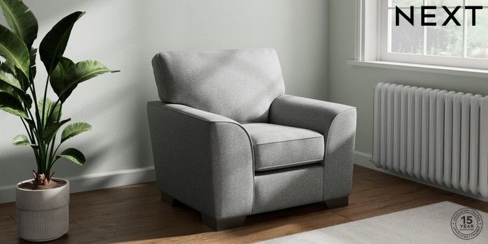 7.2.10 Stamford Armchair Chunky Weave Mid Grey Square Angle - Gunmetal | Made Click here to use our website with more accessibility support, for example screen readers