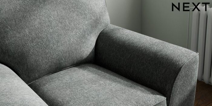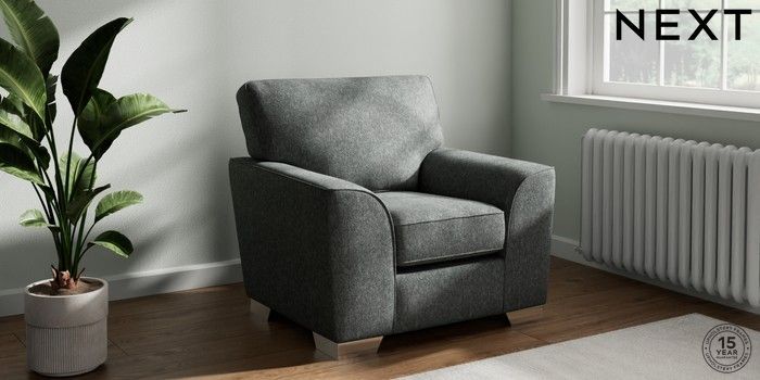 7.2.10 Stamford Armchair Cotswold Chenille Dark Grey Square Angle - Chrome Metal | Made Click here to use our website with more accessibility support, for example screen readers