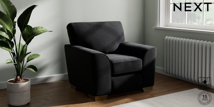 7.2.10 Stamford Armchair Fine Chenille Easy Clean Black Square Angle - Brushed Brass | Made Click here to use our website with more accessibility support, for example screen readers
