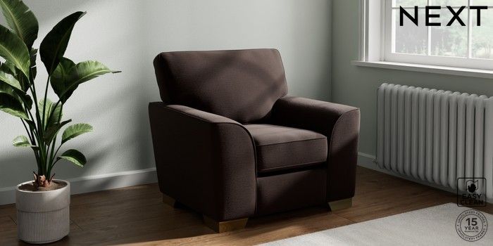 7.2.10 Stamford Armchair Fine Chenille Easy Clean Chocolate Brown Square Angle - Brushed Brass | Made Click here to use our website with more accessibility support, for example screen readers