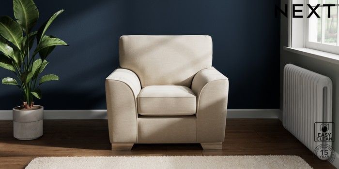7.2.10 Stamford Armchair Fine Chenille Easy Clean Oyster Square Angle - Chrome Metal | Made Click here to use our website with more accessibility support, for example screen readers