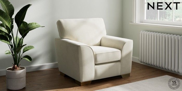 7.2.10 Stamford Armchair Luxe Chenille Oyster Square Angle - Brushed Brass | Made Click here to use our website with more accessibility support, for example screen readers