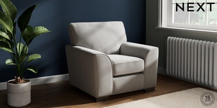 7.2.10 Stamford Armchair Natural Mix Light Grey Square Angle - Gunmetal | Made Click here to use our website with more accessibility support, for example screen readers