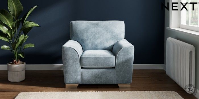 7.2.10 Stamford Armchair Plush Chenille Light Blue Square Angle - Chrome Metal | Made Click here to use our website with more accessibility support, for example screen readers