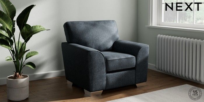 7.2.10 Stamford Armchair Plush Chenille Slate Blue Square Angle - Chrome Metal | Made Click here to use our website with more accessibility support, for example screen readers