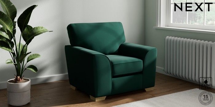 7.2.10 Stamford Armchair Plush Velvet Easy Clean Bottle Green Square Angle - Light | Made Click here to use our website with more accessibility support, for example screen readers