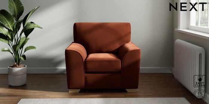 7.2.10 Stamford Armchair Plush Velvet Easy Clean Ginger Orange Square Angle - Light | Made Click here to use our website with more accessibility support, for example screen readers