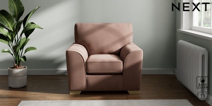 7.2.10 Stamford Armchair Plush Velvet Easy Clean Mid Natural Square Angle - Light | Made Click here to use our website with more accessibility support, for example screen readers