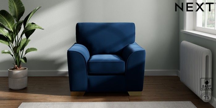 7.2.10 Stamford Armchair Plush Velvet Easy Clean Navy Blue Square Angle - Brushed Brass | Made Click here to use our website with more accessibility support, for example screen readers