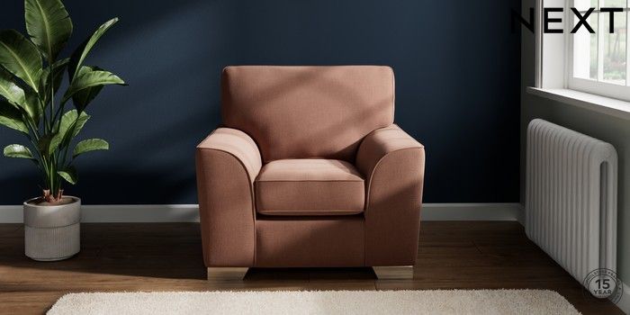 7.2.10 Stamford Armchair Relaxed Linen Look Light Rust Brown Square Angle - Chrome Metal | Made Click here to use our website with more accessibility support, for example screen readers
