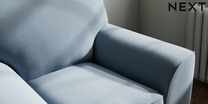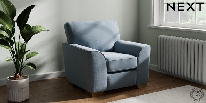 7.2.10 Stamford Armchair Relaxed Linen Look Mid Blue Square Angle - Brushed Brass | Made Click here to use our website with more accessibility support, for example screen readers