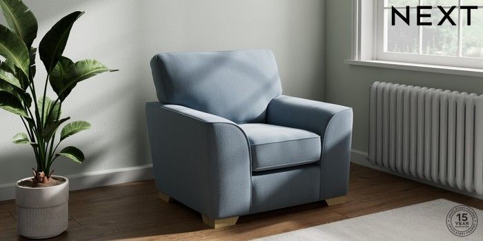 7.2.10 Stamford Armchair Relaxed Linen Look Mid Blue Square Angle - Light | Made Click here to use our website with more accessibility support, for example screen readers