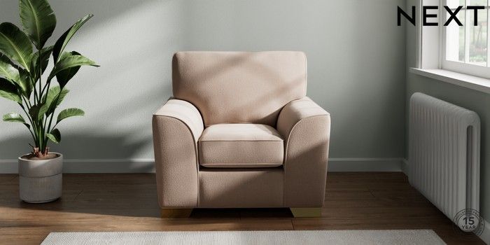7.2.10 Stamford Armchair Relaxed Linen Look Mid Natural Square Angle - Brushed Brass | Made Click here to use our website with more accessibility support, for example screen readers