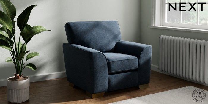 7.2.10 Stamford Armchair Ripple Chenille Dark Blue Square Angle - Brushed Brass | Made Click here to use our website with more accessibility support, for example screen readers