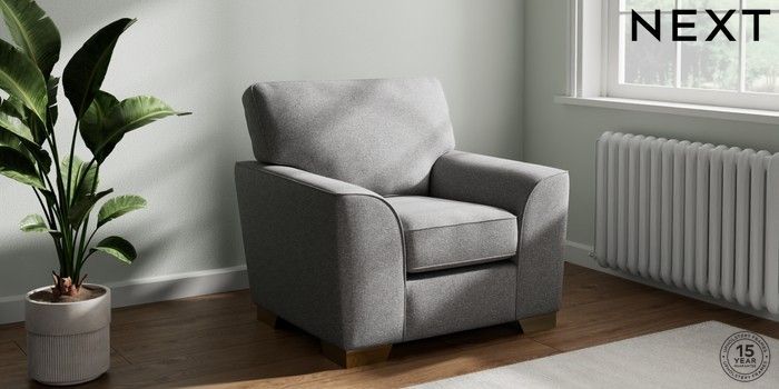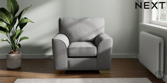 7.2.10 Stamford Armchair Studio Chenille Mid Grey Square Angle - Brushed Brass | Made Click here to use our website with more accessibility support, for example screen readers