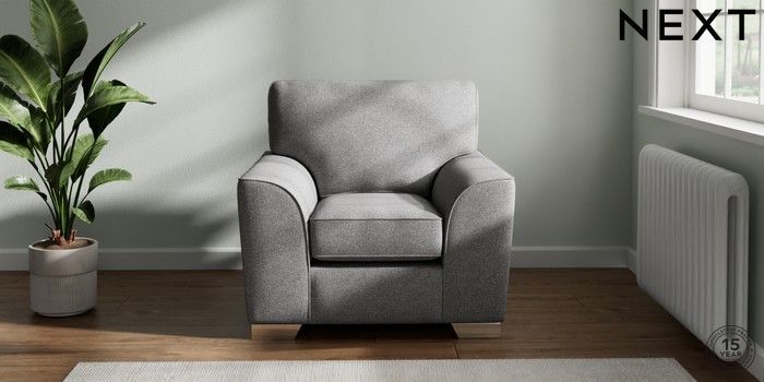 7.2.10 Stamford Armchair Studio Chenille Mid Grey Square Angle - Chrome Metal | Made Click here to use our website with more accessibility support, for example screen readers
