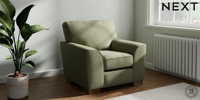 7.2.10 Stamford Armchair Tweedy Chenille Mid Moss Green Square Angle - Brushed Brass | Made Click here to use our website with more accessibility support, for example screen readers