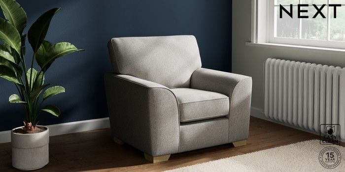 7.2.10 Stamford Armchair Woven Chenille Easy Clean Light Grey Square Angle - Light | Made Click here to use our website with more accessibility support, for example screen readers