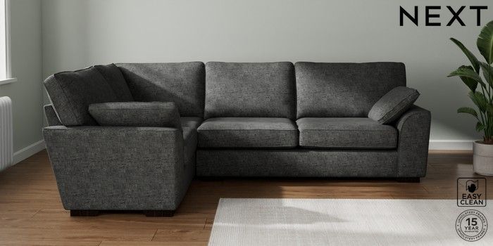 7.2.10 Stamford Large Corner Sofa - Left Hand Boucle Weave Easy Clean Charcoal Grey Large Square Angle - Dark | Made Click here to use our website with more accessibility support, for example screen readers