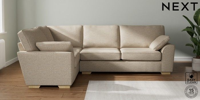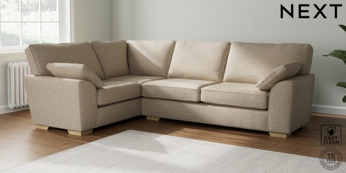 7.2.10 Stamford Large Corner Sofa - Left Hand Boucle Weave Easy Clean Dark Natural Large Square Angle - Light | Made Click here to use our website with more accessibility support, for example screen readers