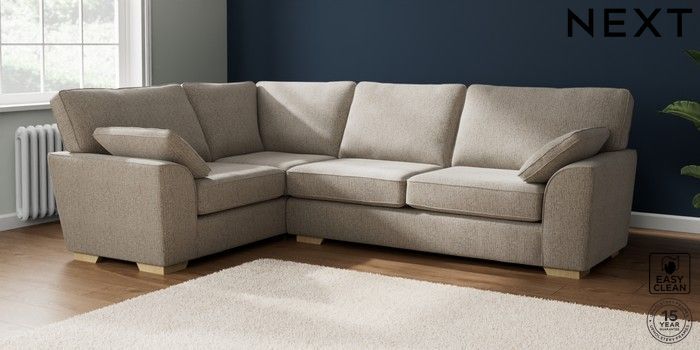 7.2.10 Stamford Large Corner Sofa - Left Hand Chunky Boucle Easy Clean Dove Large Square Angle - Light | Made Click here to use our website with more accessibility support, for example screen readers