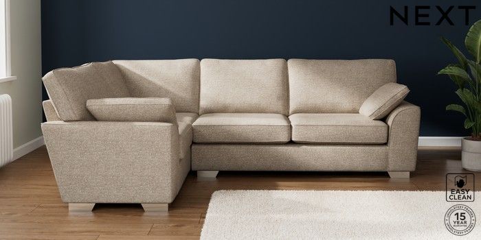 7.2.10 Stamford Large Corner Sofa - Left Hand Chunky Boucle Easy Clean Mid Natural Large Square Angle - Chrome Metal | Made Click here to use our website with more accessibility support, for example screen readers