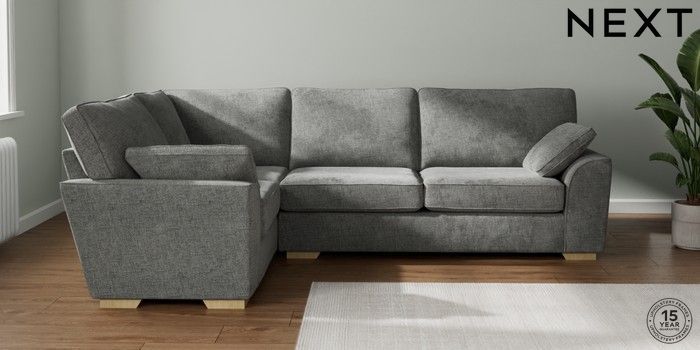 7.2.10 Stamford Large Corner Sofa - Left Hand Chunky Chenille Dark Grey Large Square Angle - Light | Made Click here to use our website with more accessibility support, for example screen readers